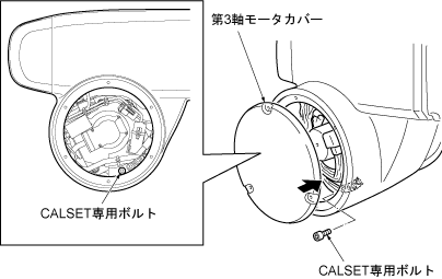 第3軸モータカバーを外し、CALSET専用ボルトを取外します。