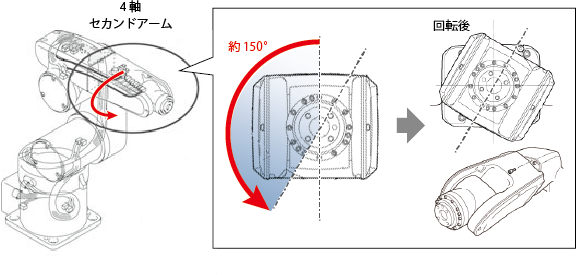 セカンドアームを正方向に約150°回します。