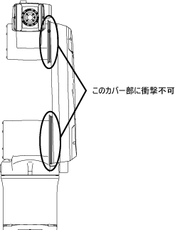 クリーンルーム仕様ロボット本体の下図カバー部には、運搬や点検時等に衝撃が加わらないように注意してください。カバー部の衝撃や変形は、クリーン性能を劣化させる恐れがあります。
