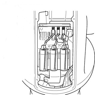 1本目の古いエンコーダバックアップ電池を取り外します。