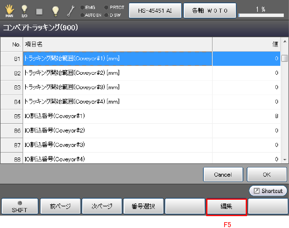 テンキーを使ってパラメータ値を入力し、「OK」を押します。