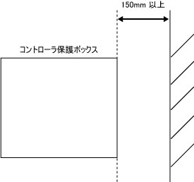 コントローラ保護ボックスの背面開口部から150mm以上あけてください。