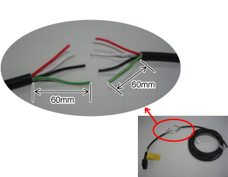 コントローラ付属の電源ケーブルをコントローラ保護ボックスに接続するには下記のように加工が必要になります。