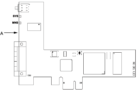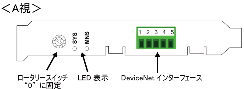 DeviceNetマスタボードの各部の名称と機能を示します。