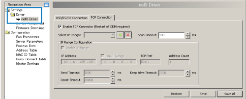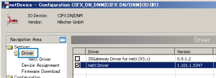 [Settings] - [Driver] - [netX Driver]をクリックします。