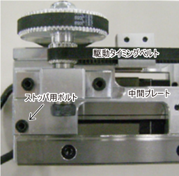 中間プレートのベースプレート側面に、ストッパ用ボルトを取付けます。