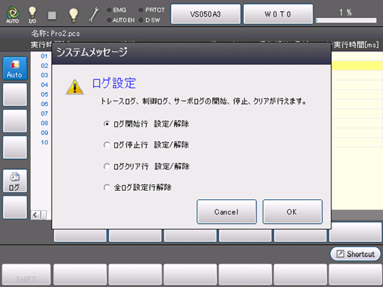 1回の操作で、同時にトレースログ、制御ログ、サーボログが設定できます。