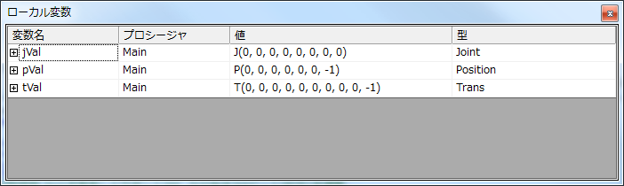 現在選択中のプログラムのローカル変数を表示します。