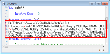 プログラムの暗号化する部分を、"#pragma encrypt(on)" "#pragma encrypt(off)"で囲みます。