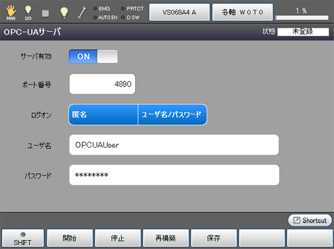OPC-UAサーバの起動、停止、再構築や保存を行います。