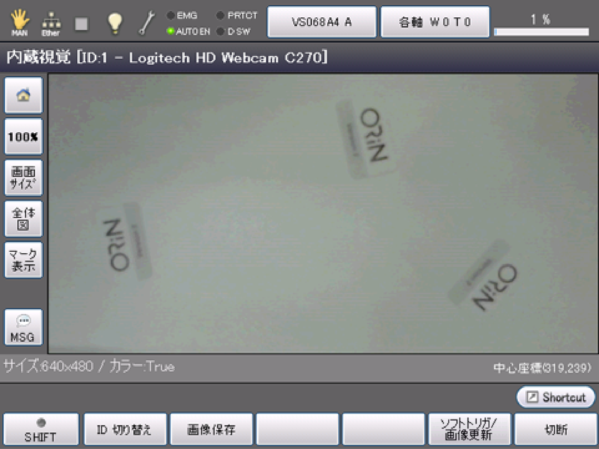 | [F5 ソフトトリガ/画像更新] | カメラを撮影し、画面に画像を表示します。画像がすでに表示されている場合は、画像が更新されます。 |