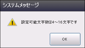 設定可能文字数が4文字以上、16文字以下になっていません。 |