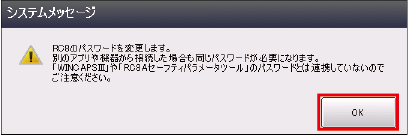 以下のようなシステムメッセージが表示されますので、内容を確認後、[OK] ボタンを押します。