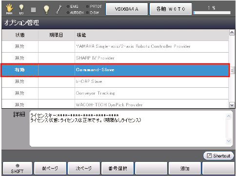 これで、Command-Slaveオプションライセンスの有効化は完了です。