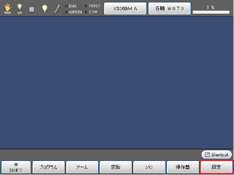 ティーチングペンダントの基本画面で、[F6 設定] を押します。