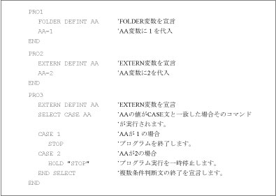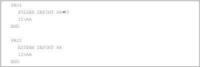 リスト3(PRO1とPRO2は別のフォルダー)説明PRO1FOLDER DEFINT AAENDリスト3は別々のフォルダーで同じAAフォルダー変数を定義可能(異なる変数となる)PRO2FOLDER DEFINT AAEND
