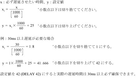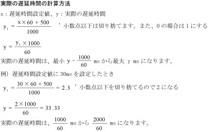 指定の時間以上必ず遅延させたい場合の設定値の算出方法は以下の通りです。
