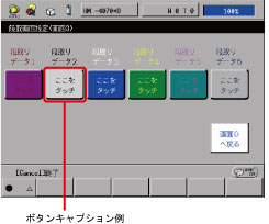 <ボタン番号>で指定した番号のボタンの中心に表示される文字列を<指定キャプション>変更します。
