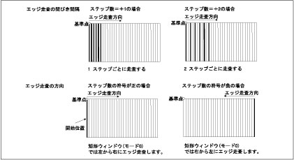 エッジの走査方向と間引き間隔を指定します。(-511~511)