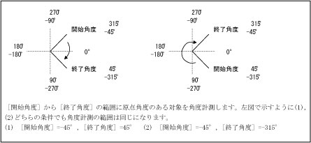 [開始角度]=0,[終了角度]=0に設定すると角度計測を行いません。