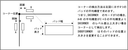コーナーサーチのパッドの幅を指定します。(1~10)
