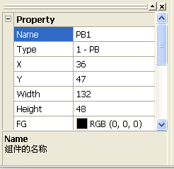 指定零部件的位置、大小等控制属性。显示的项目因零部件(控制)的种类而异。