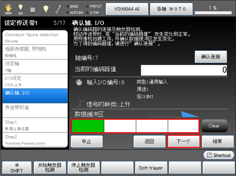 使用相机拍摄工件,确认[数据缓冲区]发生变化。 按[下一步]。