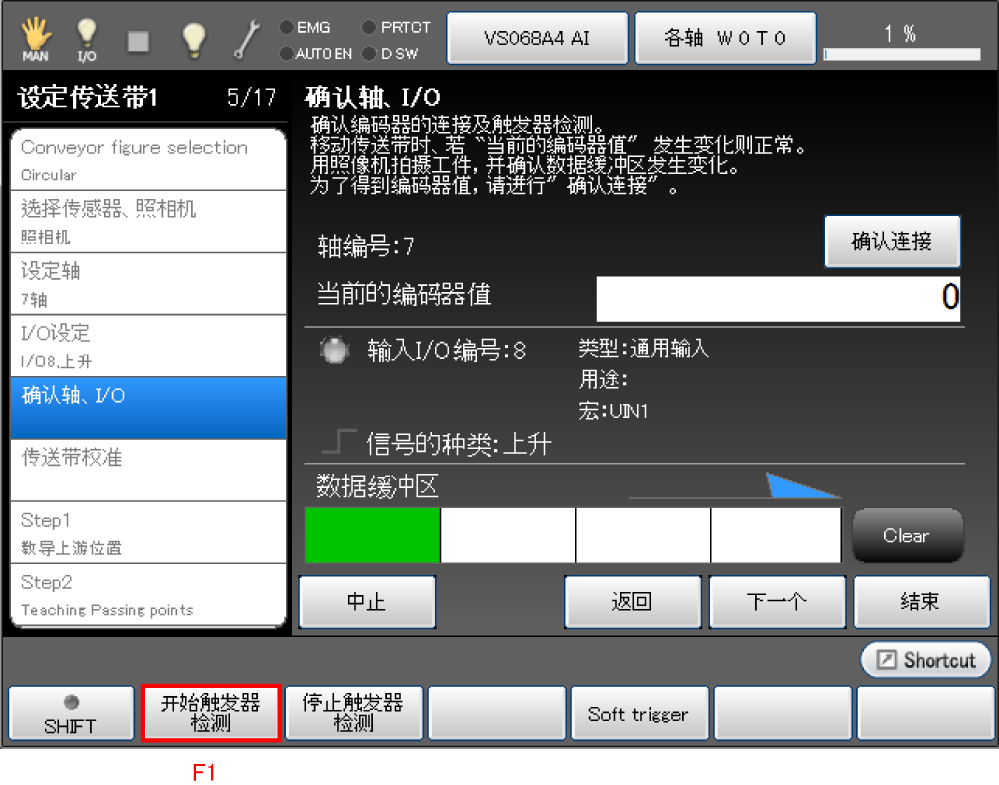 连接编码器,确认触发器检测。