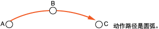 通过圆弧插补控制将机器人移动到目标位置。通过位置坐标(点型)指定经由位置和目标位置。