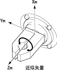 以近似矢量为轴进行相对旋转动作。接近矢量的朝向可以根据工具坐标的定义自由改变。下图为示例。