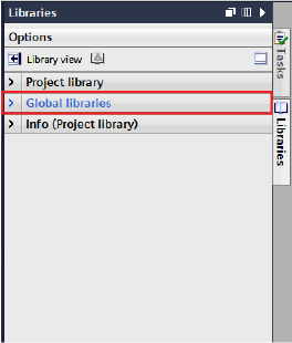 启动"TIA Portal V14",显示工具右端的“库”选项卡的“全局库”。