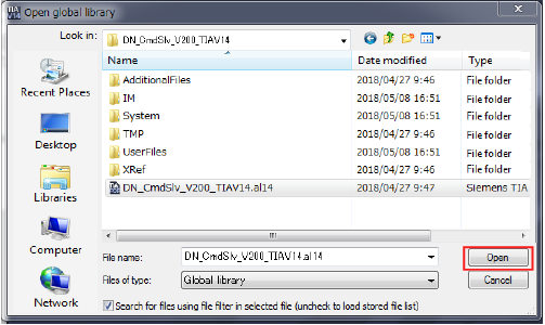 在“全局库”中追加了“DN_CmdSlv_V2**_TIAV14”。