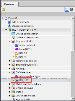 将在“PLC数据类型”中创建“DN_UDT”文件。