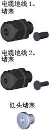 这些是从5种电缆地线和堵塞中,根据用户的夹治具上使用的配线、配管的种类及敷设方法,任意选择的部件。 ※这些选件是必须选择的部件。 |