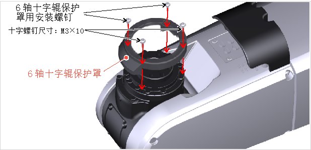 如果是标准型号的机器人,在6轴部固定6轴十字辊保护罩。