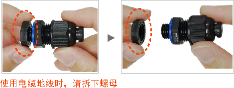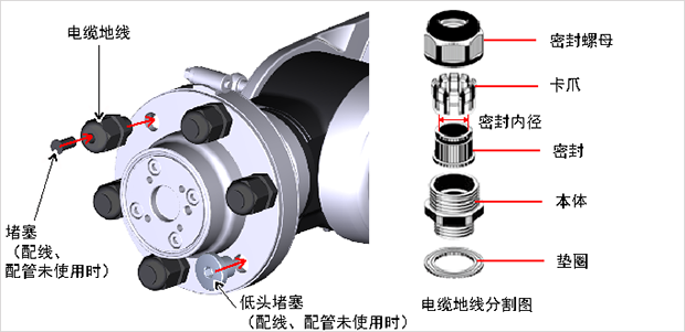 请在不使用的部位装上堵塞,堵上电缆地线的孔。