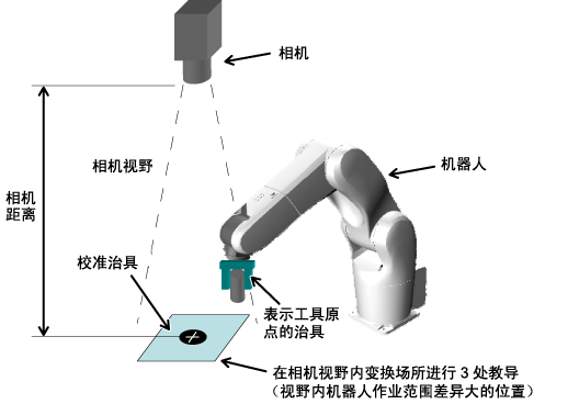- 如下图所示,按照与实际作业相同识别的相机距离、视野尺寸进行配线。