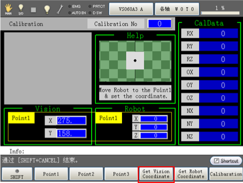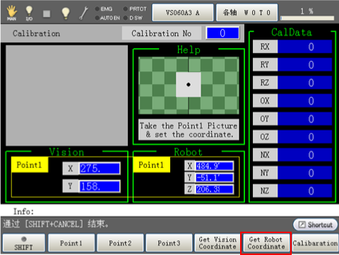 使用相机拍摄Point1,读取坐标。按照以下步骤输入读取的坐标。