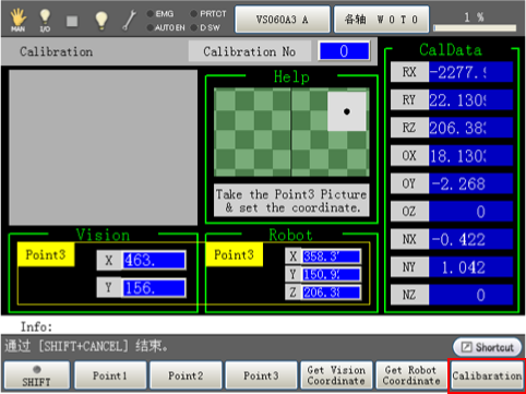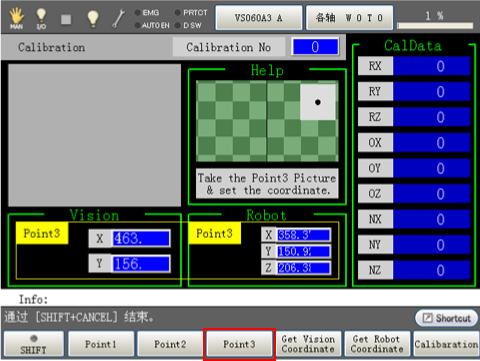 如果按下[Point 3]按钮,可注册第3处的视觉坐标、机器人坐标。