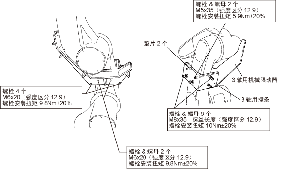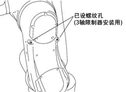 下图为将3轴的动作角度变更为+侧128°、-侧14.5°的机械限动器的制作图纸示例。需要用户参考下述图纸准备限制器。