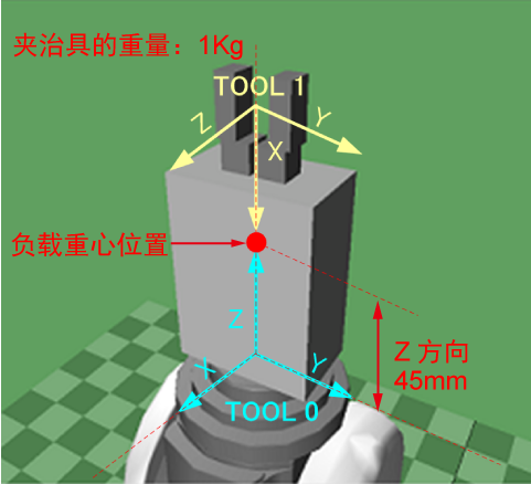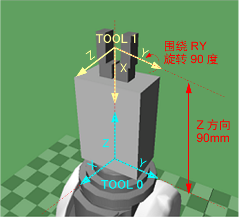 TOOL1坐标:X=0 , Y=0 , Z=90 , RX=0 , RY=90 , RZ=0