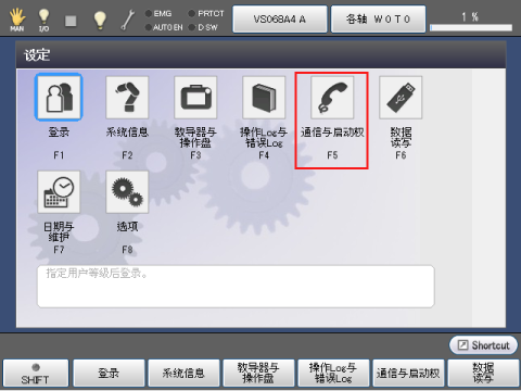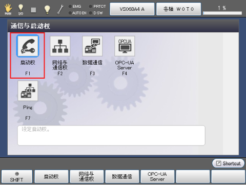 操作路径: 基本画面 - [F6 设定] - [F5 通信与启动权] - [F1 启动权]
