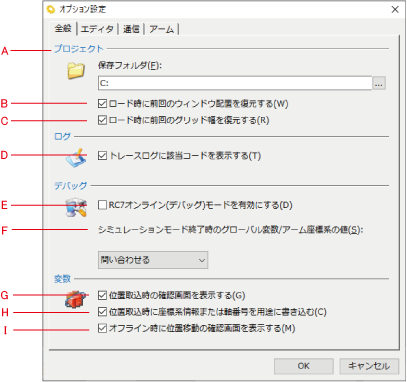 C:「ロード時に前回の変数/アーム座標系のグリッド幅を復元する」
