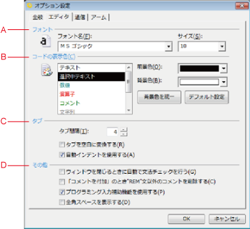 「オプション設定」ダイアログは、4つのタブで構成されています。