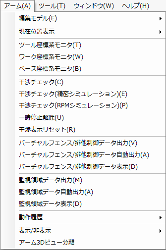 「アーム」メニュー