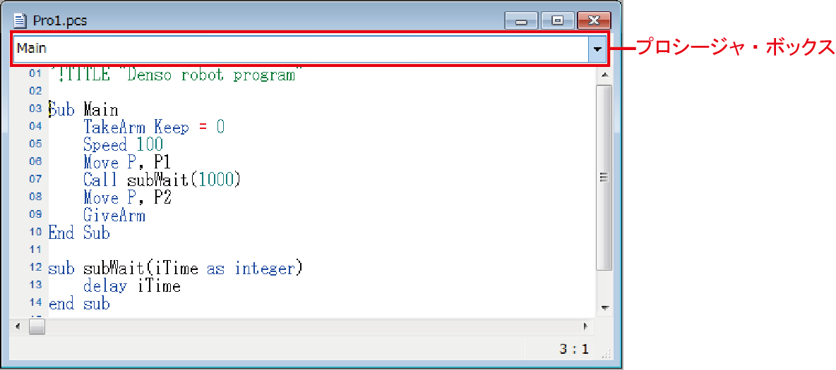 カーソルを、選択したプロシージャの先頭に移動させます。