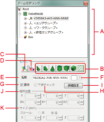 オブジェクトの相対位置のX、Y、Zを設定します。 設定単位はミリです。 - RX、RY、RZ