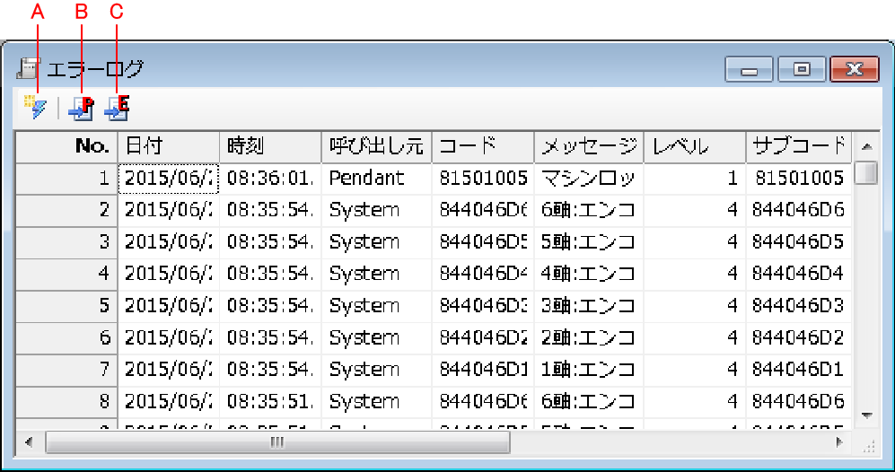 コントローラからエラーログデータを受信し表示します。