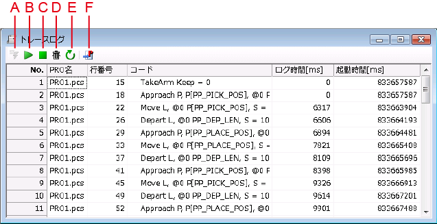 B:「トレースログ開始」ボタン