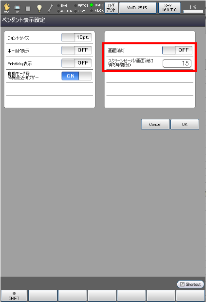 操作経路 : [F6 設定] – [F3 ペンダントと操作盤] – [F2 ペンダント表示設定]